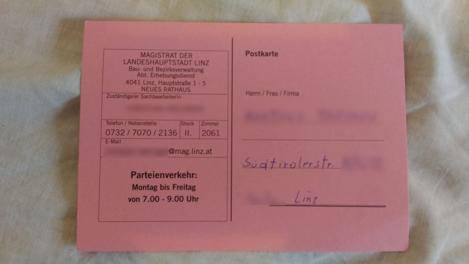 Найдя нужный кабинет в длинных бюрократических коридорах главного муниципального органа Линца, мы познакомились с очень милым сотрудником, который вручил нам письмо.