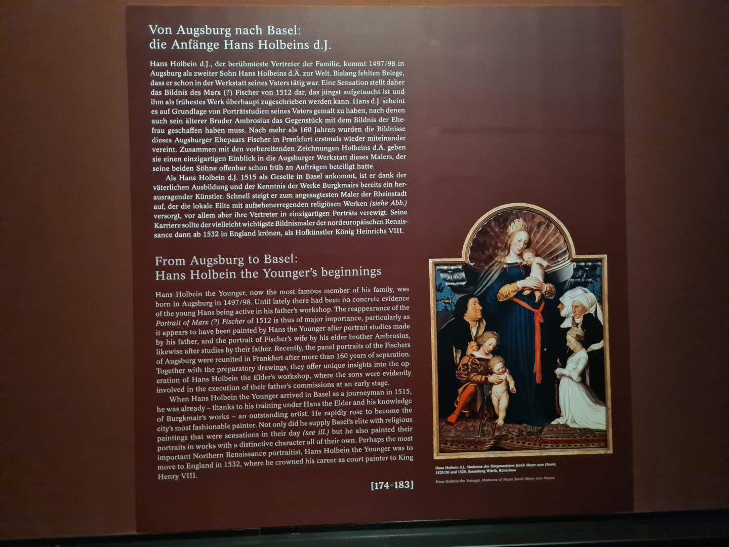 Ганс Гольбейн-старший и Ганс Бургкмайр считаются наряду с Альбрехтом Дюрером предшественниками ренессансной живописи в Германии. Процветающий имперский и торговый город Аугсбург был важным центром в этот художественный золотой век. Так что, придя в знаменитый Венский музей истории искусств (нем. Kunsthistorisches Museum Wien), вы попадаете в историю развития художественных стилей, техник и работ разных авторов.