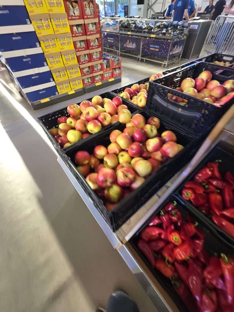 Полностью собранный, я вышел из нашей Premium-зоны чуть раньше, чем наша команда — им нужно было больше времени. Первым делом я зашёл в супермаркет Aldi на территории. Мне было интересно посмотреть ассортимент, и он меня порадовал: похоже на Hofer. Там продавались вода, соки, фрукты, часть овощей, салаты, молочка, нарезки, выпечка, булочки — в целом выбрать есть из чего. Я ещё заметил, что там можно заказать мясо на гриле, но об этом расскажу позже. Сейчас мне важно было просто понять, что где находится.
