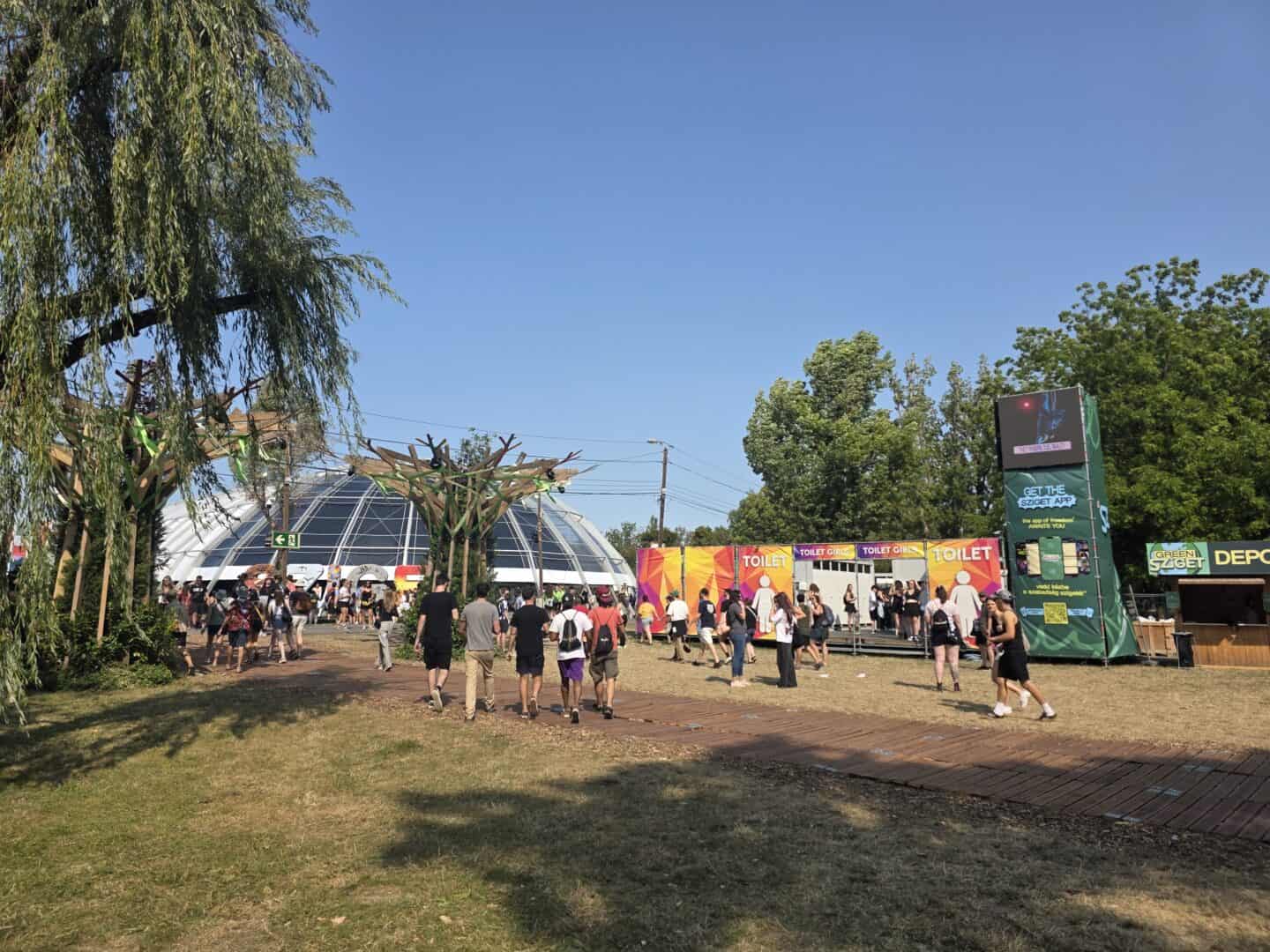 В первый день мы ещё немного суетились. Казалось, что нужно успеть всё и сразу, поэтому середина дня местами превращалась в беготню и лёгкое безумие. Но на Sziget это тоже часть опыта. Мы относились к такому спокойно: позволяли себе и ускориться, и, наоборот, замедлиться — просто пройтись по центру, посмотреть, что открылось, что поменялось с прошлого года, как устроены новые точки и маршруты.