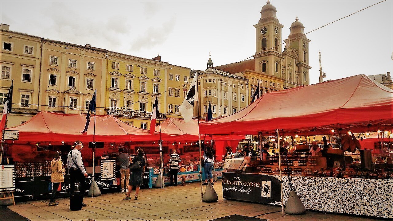 Лето 2020 года, как и весь год, запомнится многим жителям планеты как сложное время. Обычно эти месяцы всегда были наполнены яркими мероприятиями, концертами, уличными развлечениями. Но только не в этом году. Линц уже больше месяца живёт без особых ограничений, связанных с коронавирусом, но каких-то больших событий на улицах практически не бывает. По вечерам и в выходные дни жизнь в городе кипит, но до прошлогодних рекордов, увы, далеко. И тут на удивление прямо посреди недели столица Верхней Австрии ненадолго стала французской. Что забыли французские товары в австрийском Линце?